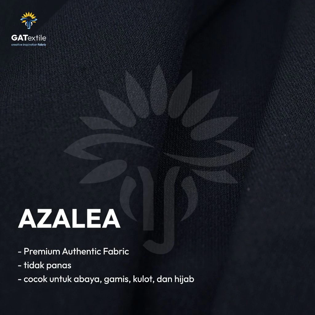 Kain Azalea merupakan kain berbahan polyester dengan tekstur halus, jatuh, dan nyaman dipakai. Tidak panas di kulit, sehingga sangat cocok digunakan untuk pembuatan abaya, kulot, gamis, niqab, maupun hijab.